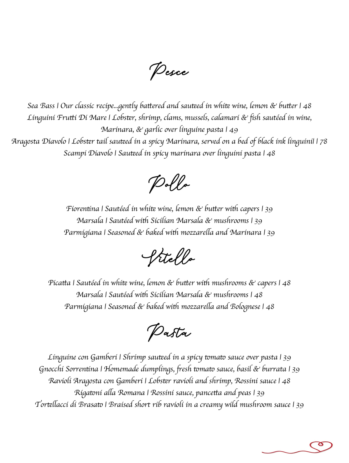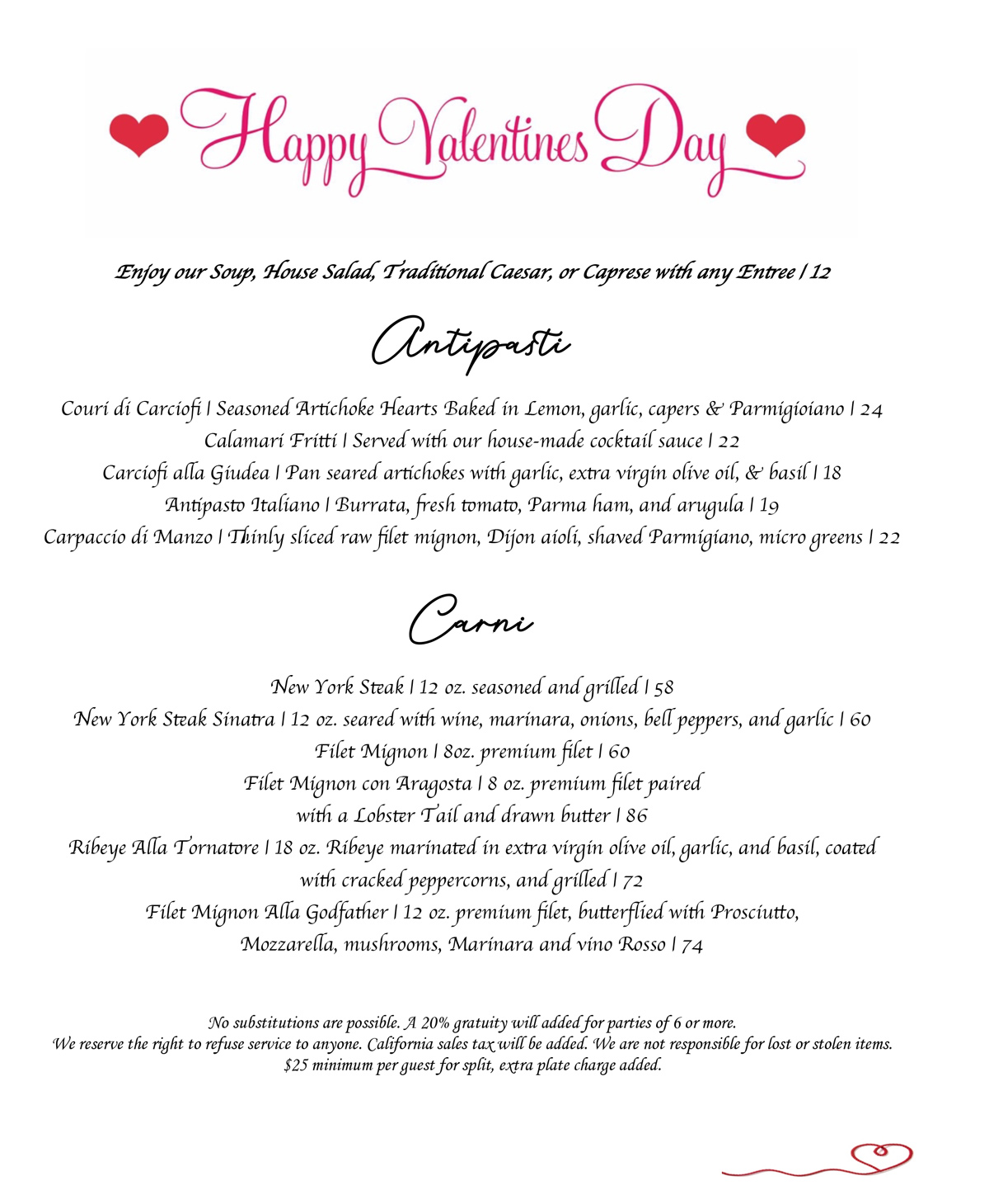 VALENTINES MENU